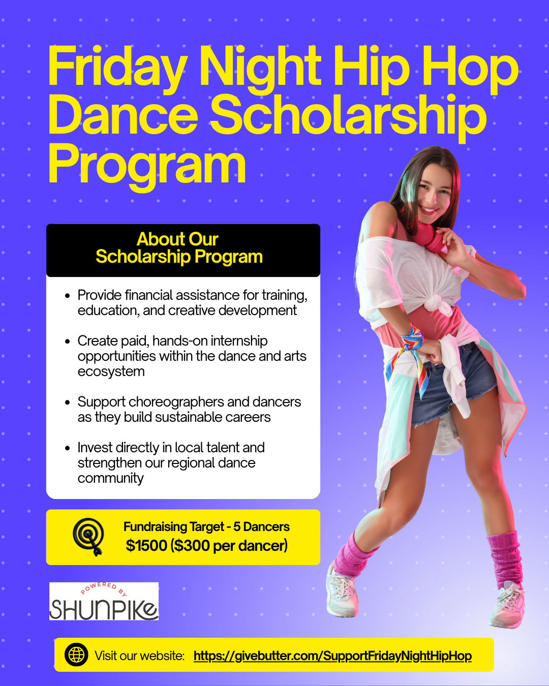 Every contribution goes directly toward empowering artists, amplifying diverse voices, and ensuring that passion—not privilege—determines who gets to pursue a future in dance.