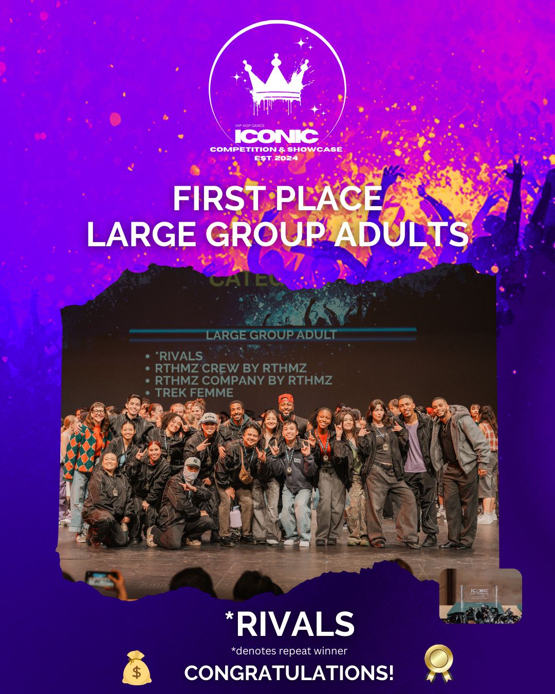 ICONIC is a unique event that brings together a group dance competition and a non-competitive showcase in one unforgettable experience! While we aim to inspire all performers, we also uphold an expectation for quality performances in both the competition and showcase.