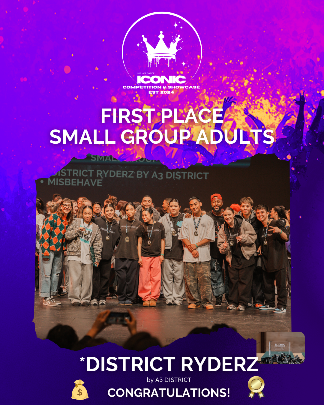 A choreography-based hip hop dance competition and showcase that brings together studios and independent crews from all age divisions. Step onto the stage, show your creativity, and compete for the crown in front of a panel of industry-respected judges who know what it takes to make it. Whether you’re here to battle or to bring your artistry to life, ICONIC is the place to make your mark.